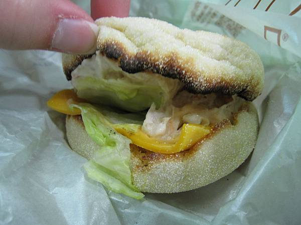 我們照例還是選了熱咖啡,至於主角鮪魚滿福堡看起來就很吸引人,