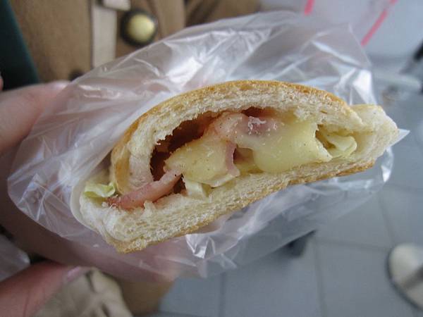 除了鮪魚餡之外,還夾了一片起司跟生菜,超豐富的,