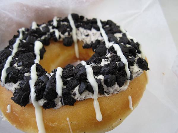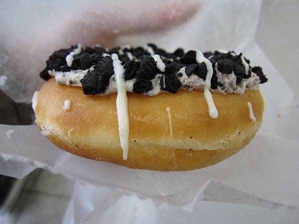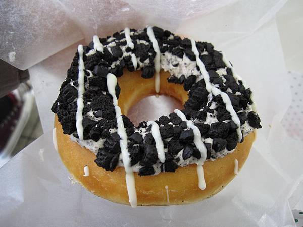 至於我們買的另一個新口味,則是在甜甜圈上塗了OREO奶油跟OREO餅乾,