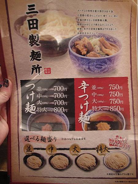招牌沾麵的菜單跟台灣的長得很像,但是玄機就在麵的分量,