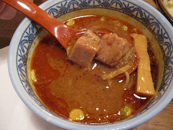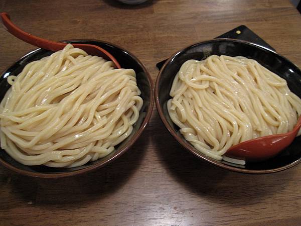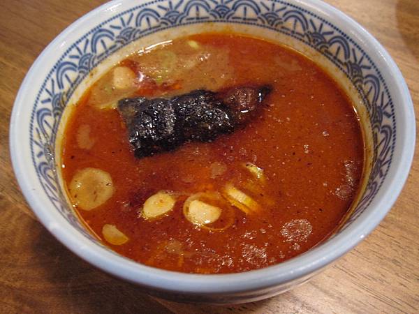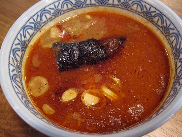 至於沾麵的濃厚豚骨魚介W湯頭,我們都點辣的,嚐起來也跟台版大同小異,