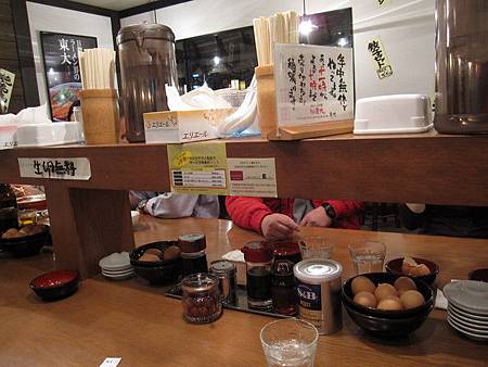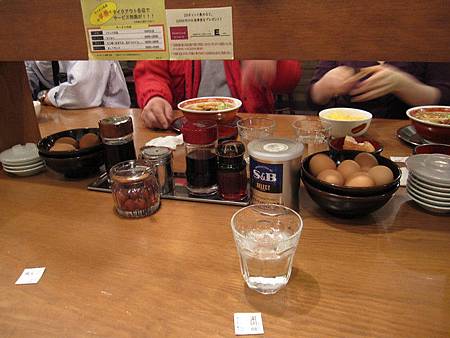 才敢將放在中間2個黑碗裡店裡免費招待的生雞蛋,吃到只剩下2、3顆,